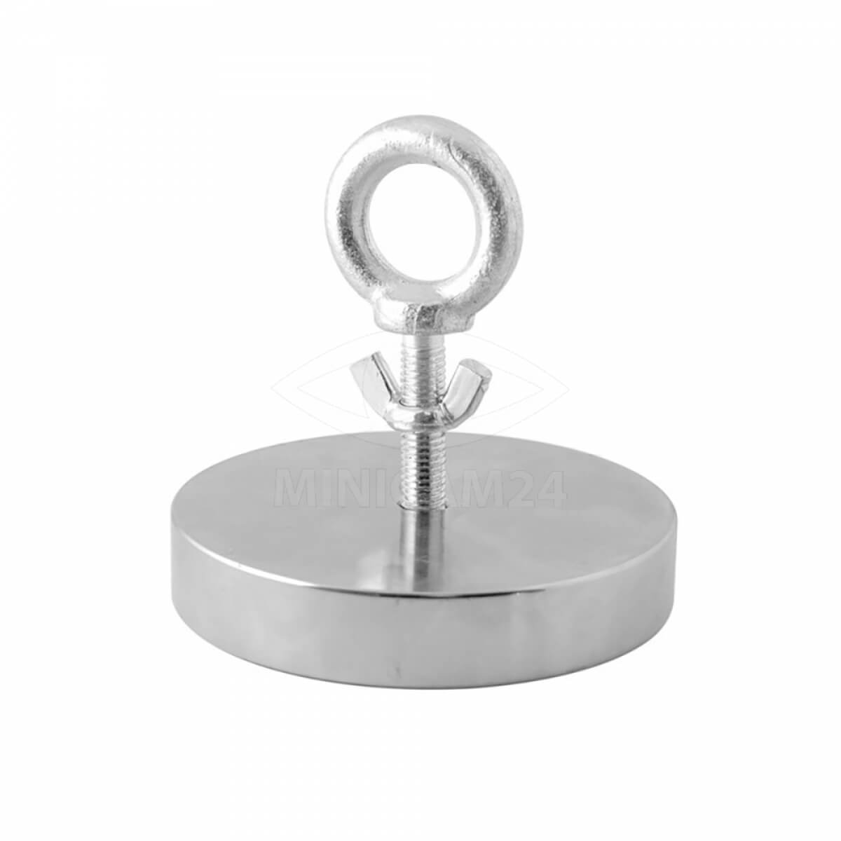 Поисковый магнит F400 поможет обнаружить металлические предметы в воде, горных расщелинах, колодцах. Сила сцепления в 500 кг дает возможность удерживать крупногабаритные и громоздкие объекты. Изделие выполнено из сплава неодима, железа и бора, помещено в стальной корпус. В центре предусмотрено отверстие для вкручивания рым-болта из углеродистой стали. Максимальное усилие на отрыв возможно при условии, что толщина объекта без ржавчины составляет не меньше 1.5 см. Магнит оцинкован для защиты от коррозии. Пригоден для эксплуатации в соленой и пресной воде. Естественная потеря заявленных свойств — 1% за 10 лет.